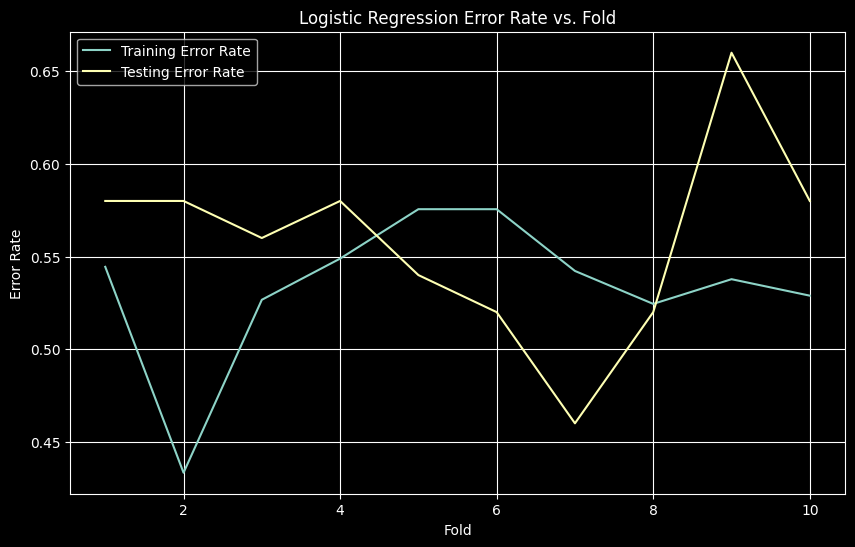 # Graph error rate for logistic regression per fold